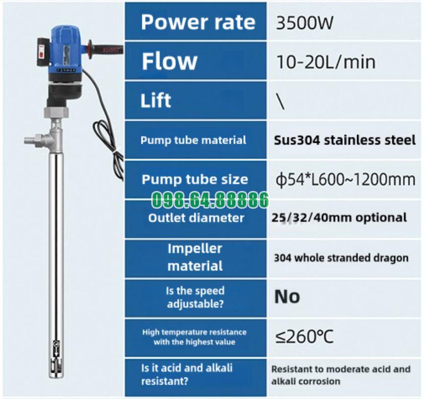 Chính vì vậy, để xử lý hiệu quả các loại chất này, cần đến thiết bị có công suất mạnh và thiết kế phù hợp như Bơm điện cầm tay dạng trục đứng JDT-3500W-JLG260.