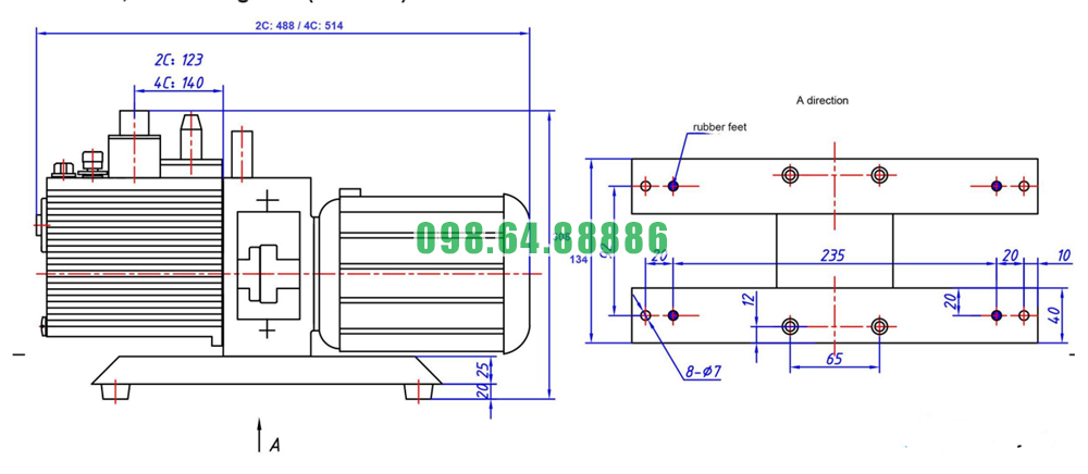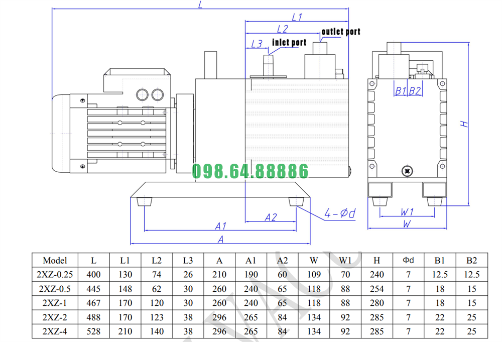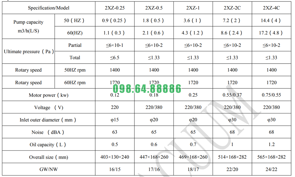 Bơm hút chân không 2XZ-2 lưu lượng 7.2 m³