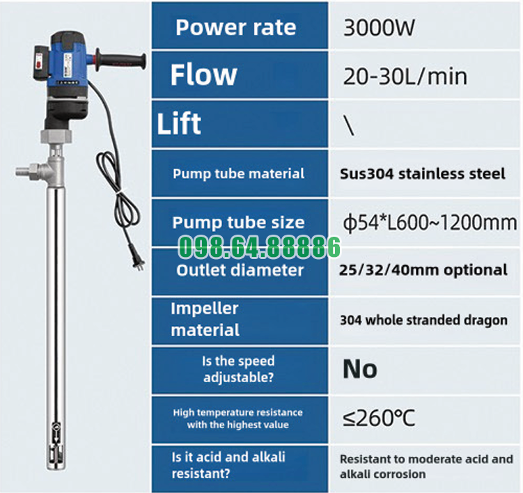 Một trong những điểm then chốt trong cách Bơm nhúng thùng phuy JDT-3000W-JLG260 xử lý chất lỏng AES dễ dàng là động cơ công suất lớn. Công suất 3000W cho phép bơm vượt qua lực cản của chất lỏng đặc mà không bị ì máy hay sụt lưu lượng.
