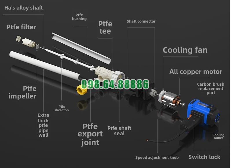 Nhờ đó, hiệu suất hút – đẩy được duy trì trong thời gian dài ngay cả khi làm việc với axit hoặc dung môi mạnh.
