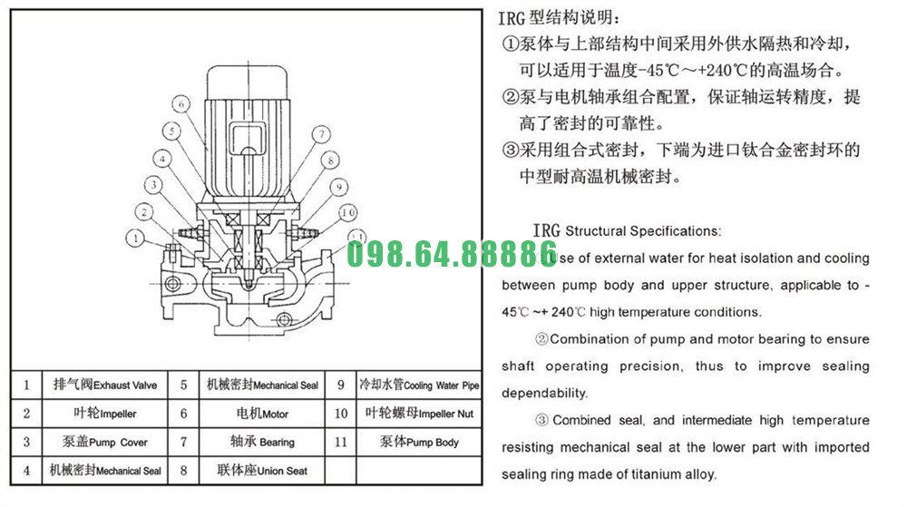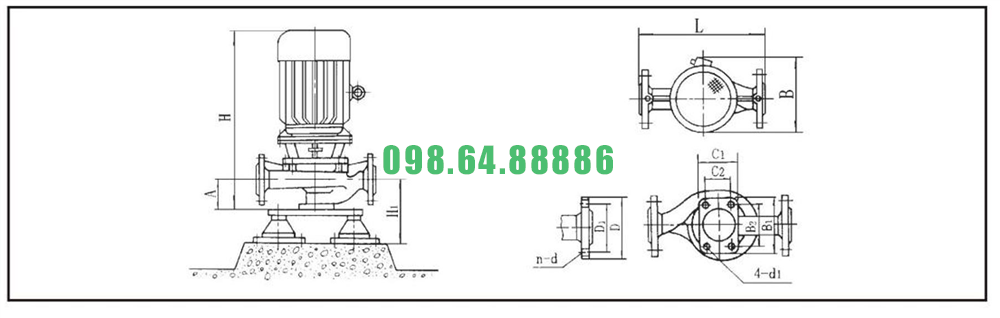 Bán bơm nước inline ly tâm trục đứng ISG25-160, IRG25-160 công suất 1.5 kw