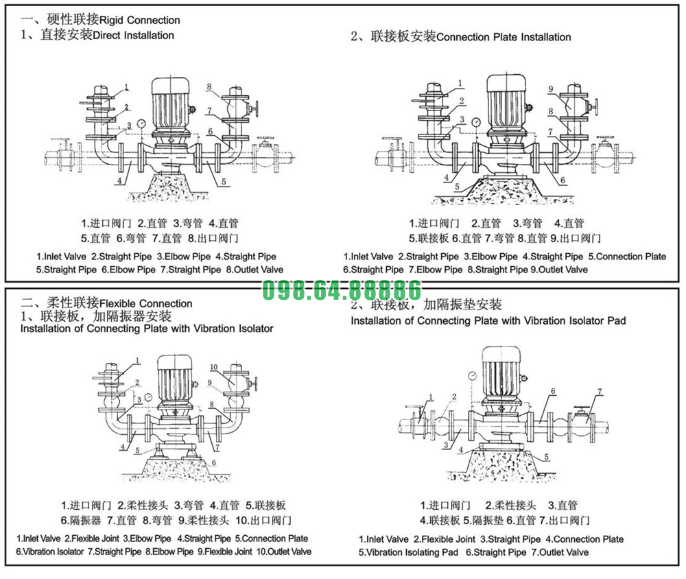 Đầu hút – xả phải đúng chiều theo mũi tên trên thân bơm