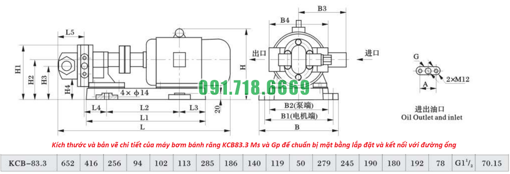 Bảng thông số kỹ thuật của bơm bánh răng công suất 2.2 kw KCB83.3