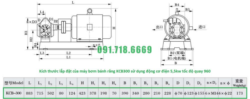 Bảng thông số kỹ thuật của bơm bánh răng KCB300 vỏ gang thép lưu lượng 18 m3/h