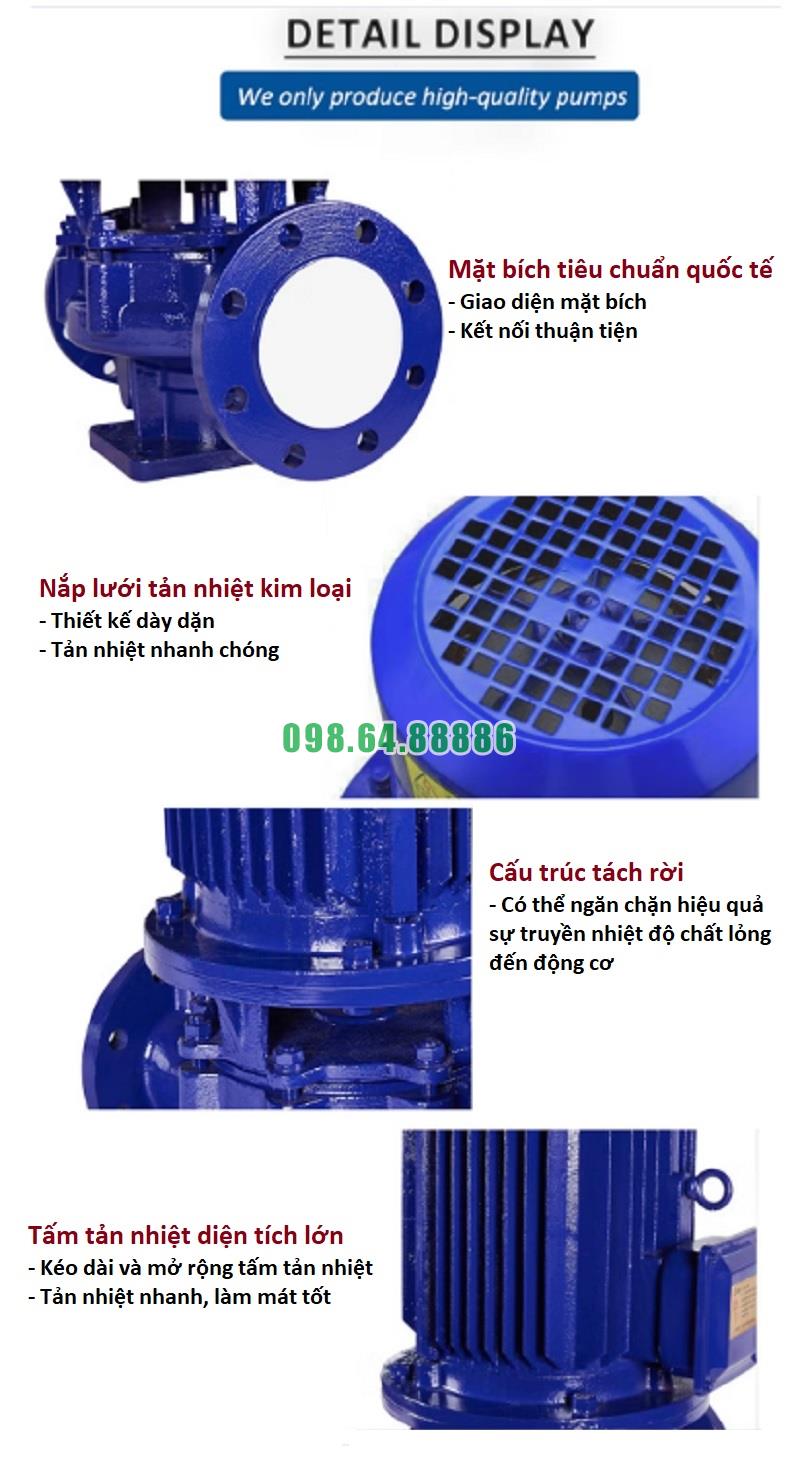Bơm booster inline, bơm inline, bơm lắp thẳng trục đứng ISG65-125A, IRG65-125A 2.2kw