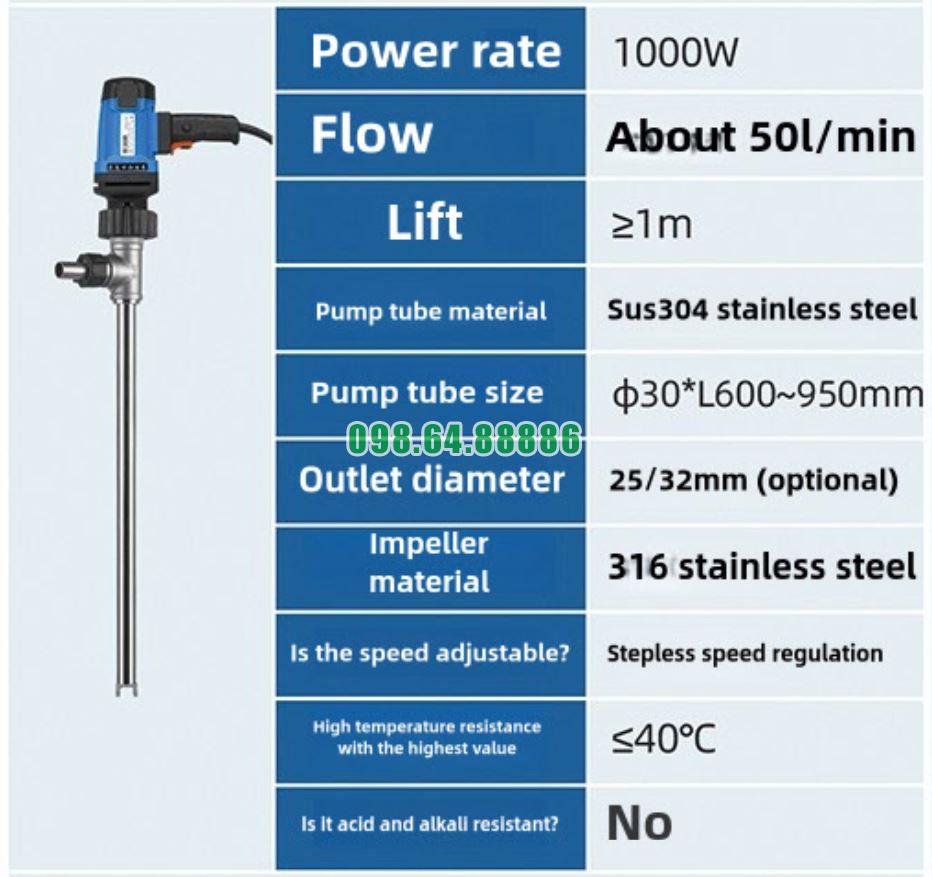 Bơm dầu thùng 20–30 lít JDT-1000W-30SUS304