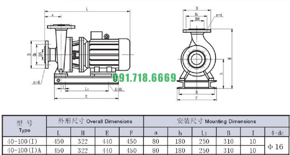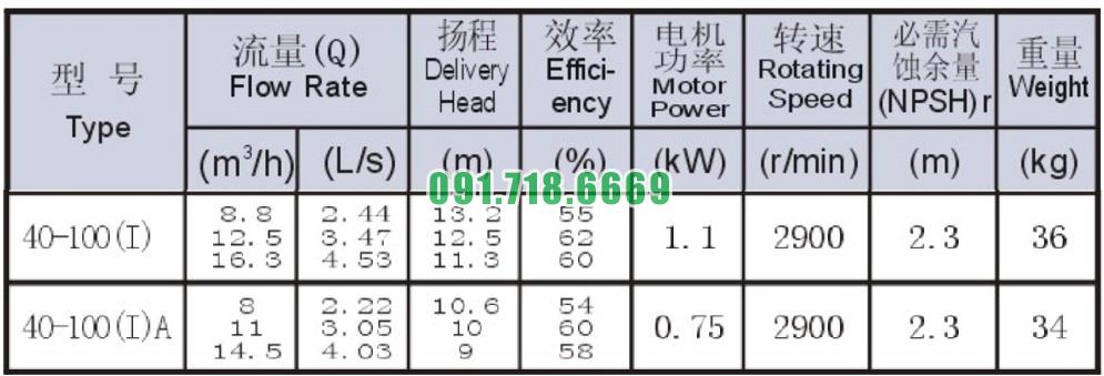 Bơm li tâm trục ngang model SLW-ISW40-100-I công suất 4.53 L/s