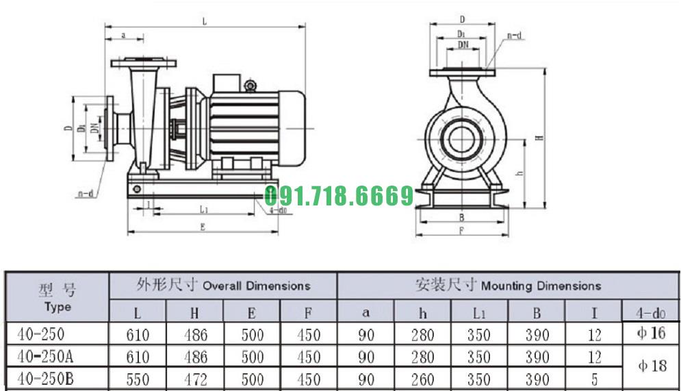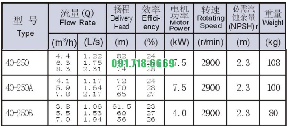 Bơm nước li tâm trục ngang lưu lượng 2.31 L/s mã SLW-ISW40-250