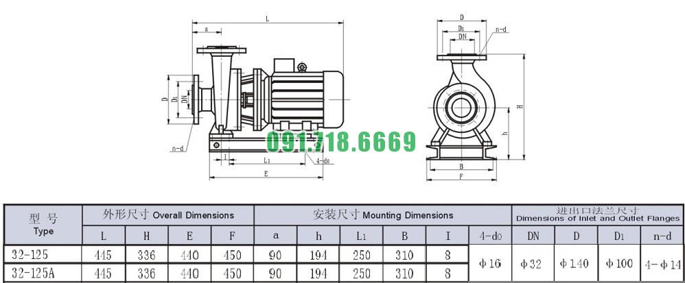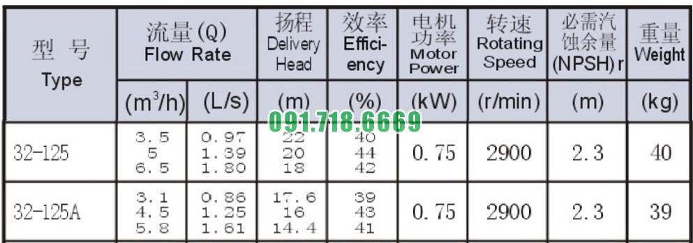 Bơm nước nằm ngang ISW32-125 đẩy cao từ 18 - 22.3m