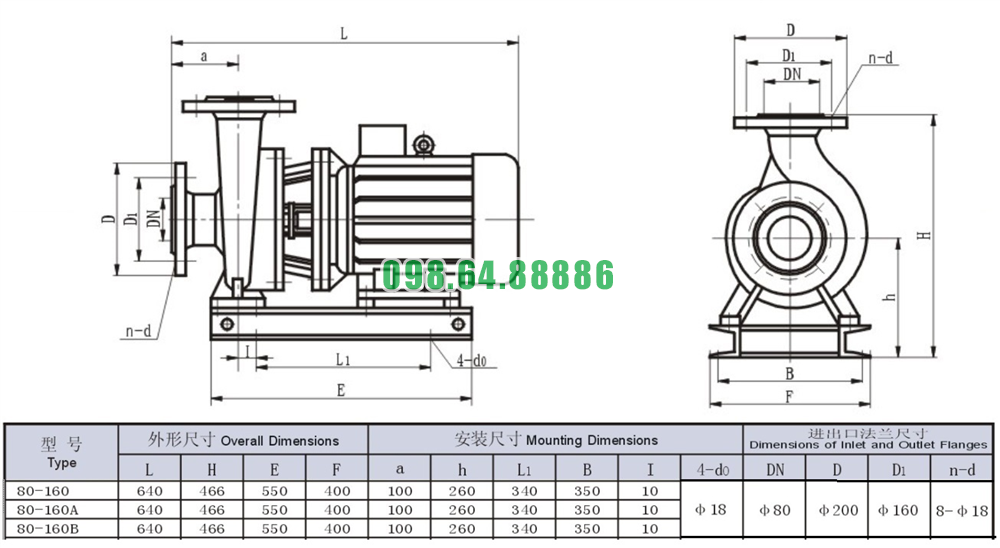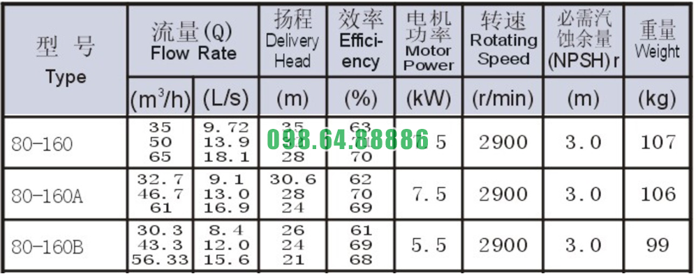 Bơm nước nằm ngang SLW80-ISW80-160 đẩy cao từ 28m- 35m