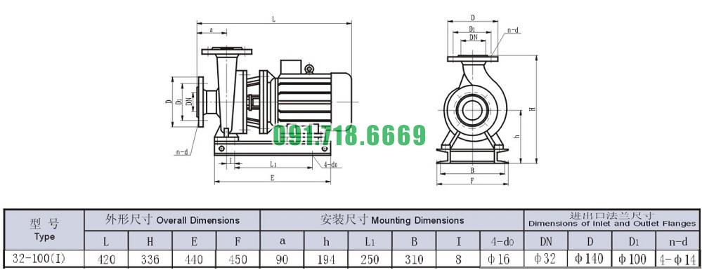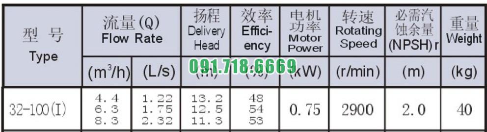 Bơm nước trục ngang ISW32-100-I đẩy cao max 13.2m