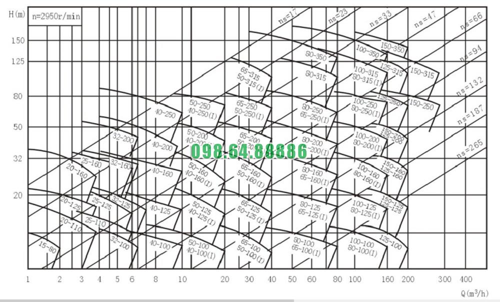 Đường cong hiệu suất bơm nước trục ngang SLW80-ISW80-315-I tốc độ quay 2900 r/min