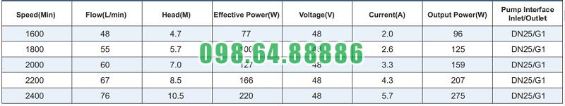 Bảng thông số kỹ thuật bơm hóa chất điện áp 24v và 48v TDM-200PERU-DC48