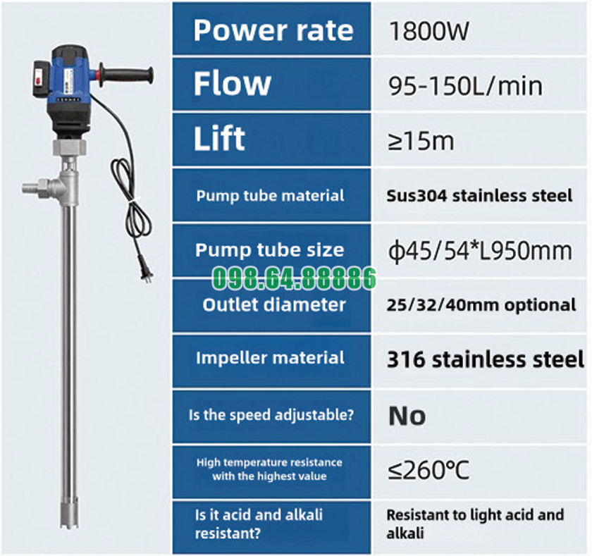Trải nghiệm sử dụng tuyệt vời cùng dòng Bơm thùng phuy lỏng nhiệt độ cao JDT-1800W-G260