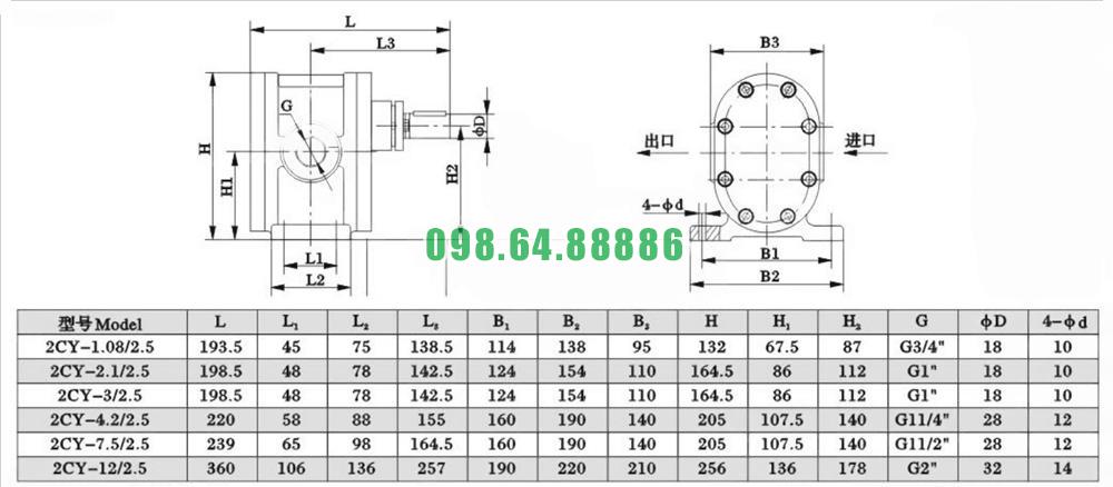 Đầu bơm bánh răng ăn khớp ngoài 2CY7.5-2.5 MS 7.5m3/h, 7.5kw-4