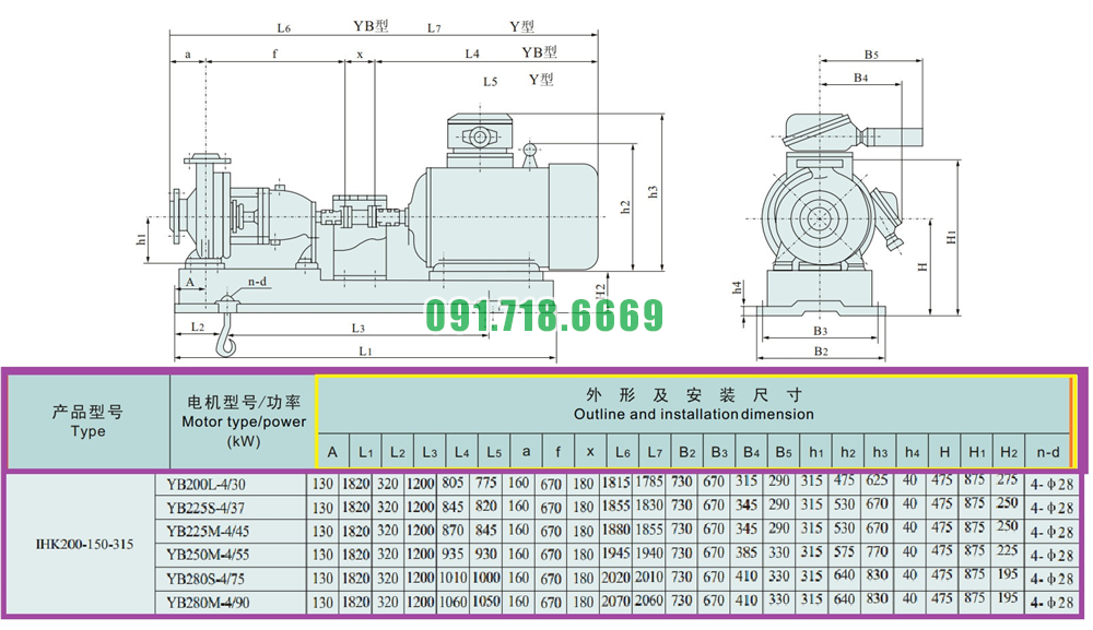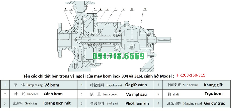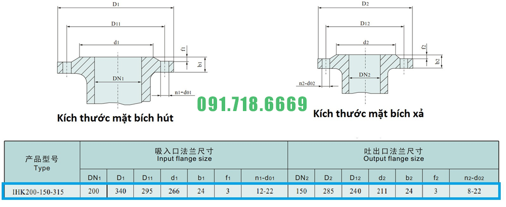 Giá máy bơm cánh hở li tâm trục ngang IHK200-150-315 lưu lượng 460 m3/h
